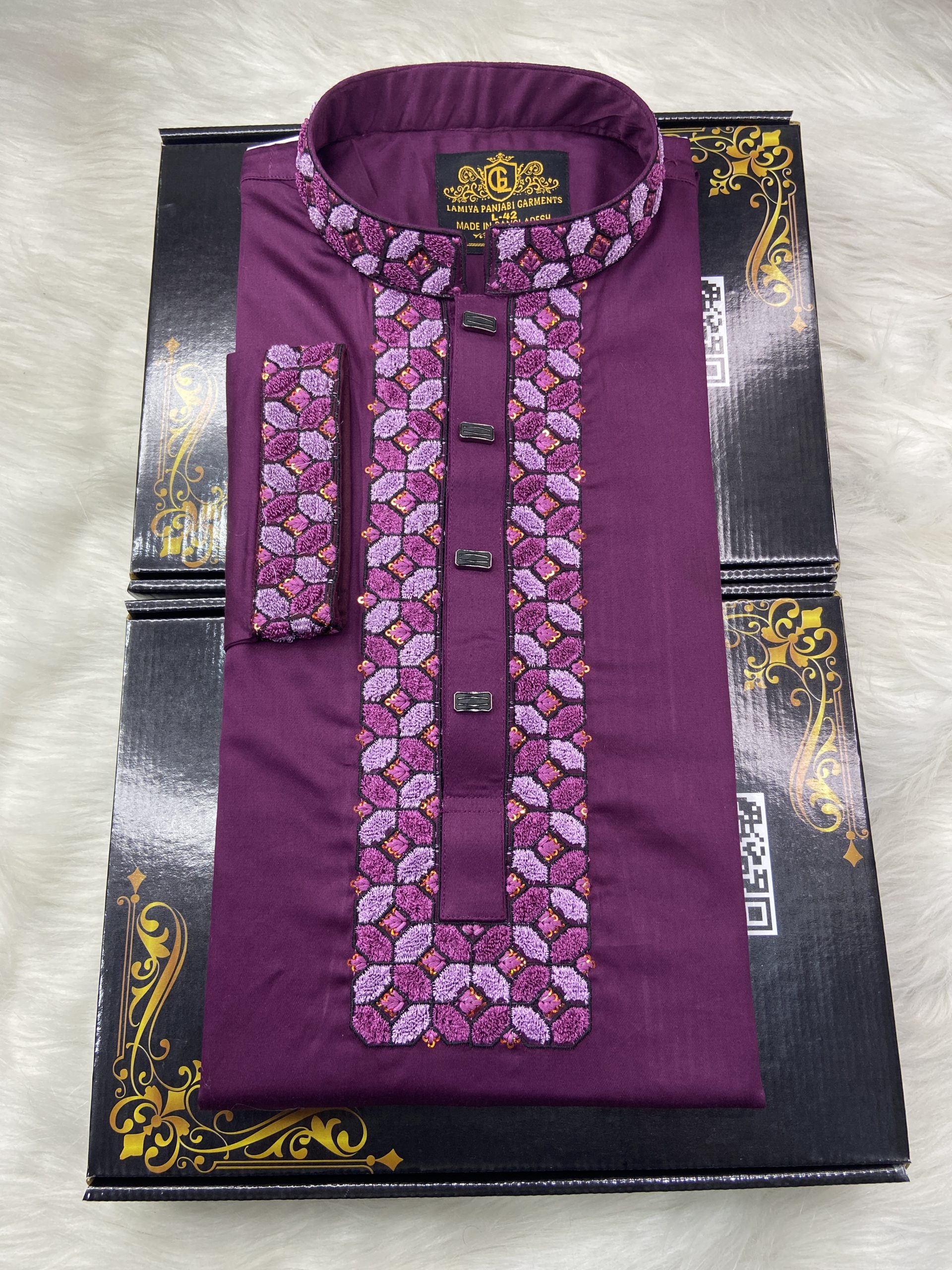 সেনেল সুতায় মাল্টিসিকুয়েন্স এমব্রয়ডারি কারজ করা যা পাঞ্জাবির আউটলুক একধাপ এগিয়ে নিয়ে গেছে।